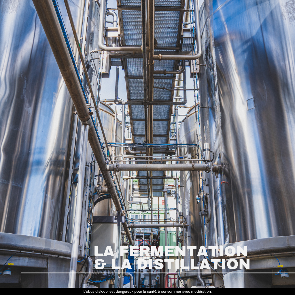 Arrivée à la distillerie, la mélasse est d’abord mise en fermentation dans d’immenses cuves durant plusieurs heures avec des levures. C’est la transformation de la mélasse en vin de cannes. Ce vin est ensuite distillé dans un alambic ou dans une colonne à distiller. C’est à l’issue de ce processus que l’on obtient du rhum blanc traditionnel de sucrerie.