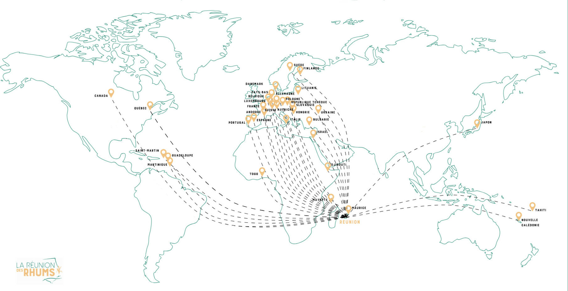 Si la métropole reste évidemment le plus gros marché à l’export, les rhums et les arrangés réunionnais commencent à se faire connaître dans toute l’Europe et même à l’étranger. Sur le marché métropolitain, il s’écoule environ 5 millions de bouteilles de rhum et de spiritueux à base de rhum originaires de la Réunion.
